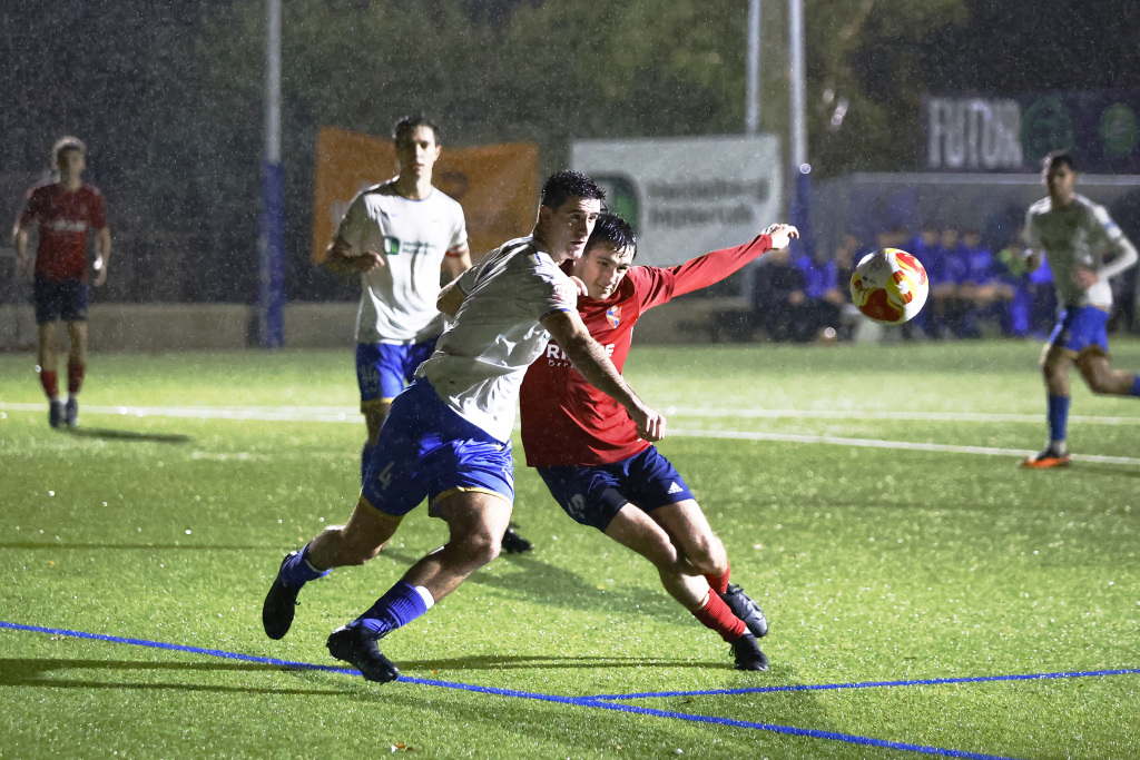 Cuando parecía que el choque se iba al descanso sin goles, el colegiado señaló penalti a favor en el minuto del Touring en el minuto 40, oportunidad que no perdió Mikel De Alba para adelantar al conjunto errenteriano desde los once metros. Con 0-1 en el marcador, ambos equipos se fueron a vestuarios bajo la intensa lluvia.
