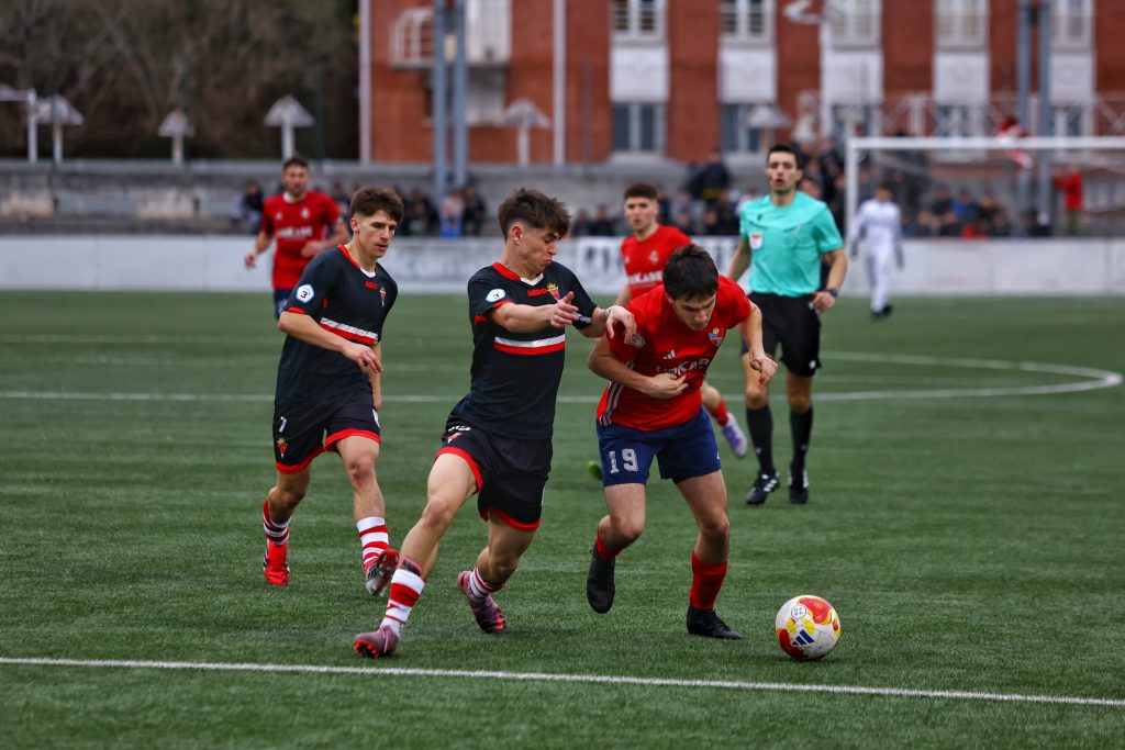 Llegando a la media hora, un balón enviado hacia el área visitante, no hay coordinación en la zaga defensiva, y lo aprovecha Oihan Zabala para inaugurar el marcador y poner en ventaja a los rojillos. Todo prosigue muy parecido, y los minutos transcurren sin que tengan que intervenir los guardametas, llegando al descanso con la mínima ventaja local en un duelo tenso pero muy poco vistoso.